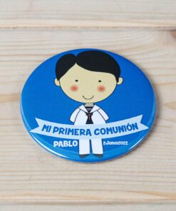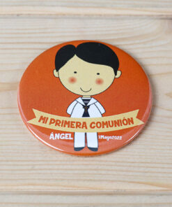 Un recuerdo original para todos los asistentes a la Comunión de tu hij@. Estuvieron presentes en la Primera Comunión y con estas chapas se llevarán un recuerdo persoanlizado y útil porque, además de la clásica trasera de alfiler, podrás convertir tu chapa en un imán para la nevera, un abridor con imán para abrir tus botellines o un bonito y práctico espejo para que siempre viajen en el bolso de las mujeres.
