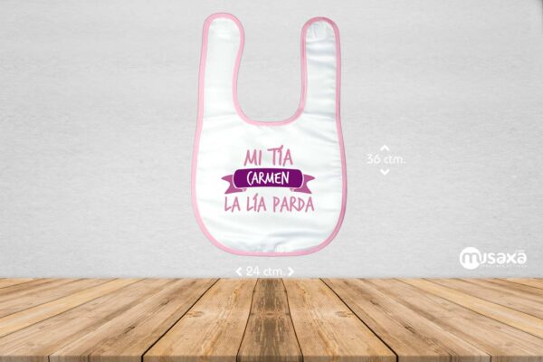 Os presentamos un fabuloso y divertido babero para que a su tata se le caiga la «baba» cuando lo vea comiendo con su nombre y esta original frase «mi tía la lía parda».